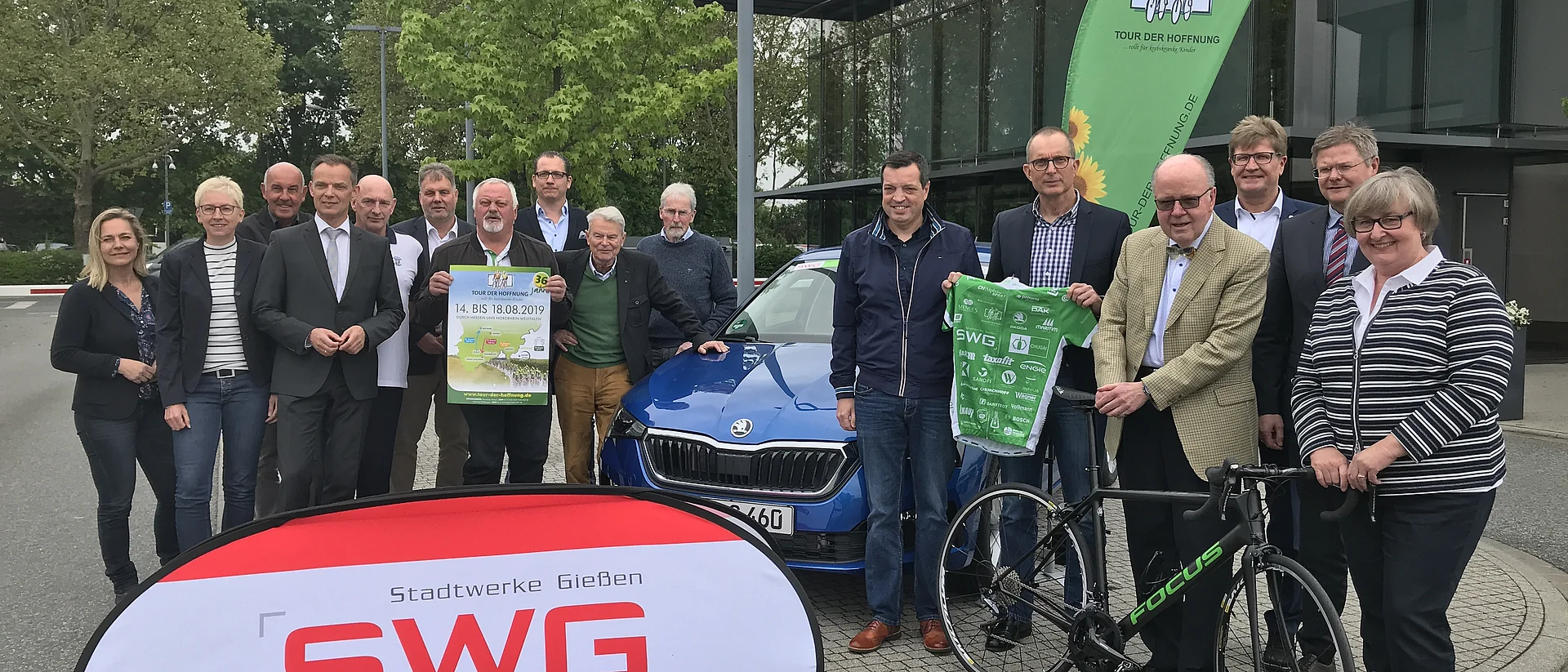 Radeln für den guten Zweck – seit 1983 treten alljährlich Prominente aus Politik, Sport und Medien sowie engagierte Hobbyradler bei der „Tour der Hoffnung“ in die Pedale. Ihr Ziel: Geld für krebskranke Kinder und deren Familien zu sammeln. Die Stadtwerke Gießen (SWG) sind bereits 25 Jahre als Partner dabei. Dieses Jubiläum steht am 14. August im Fokus des Tourstopps auf dem Kirchplatz.