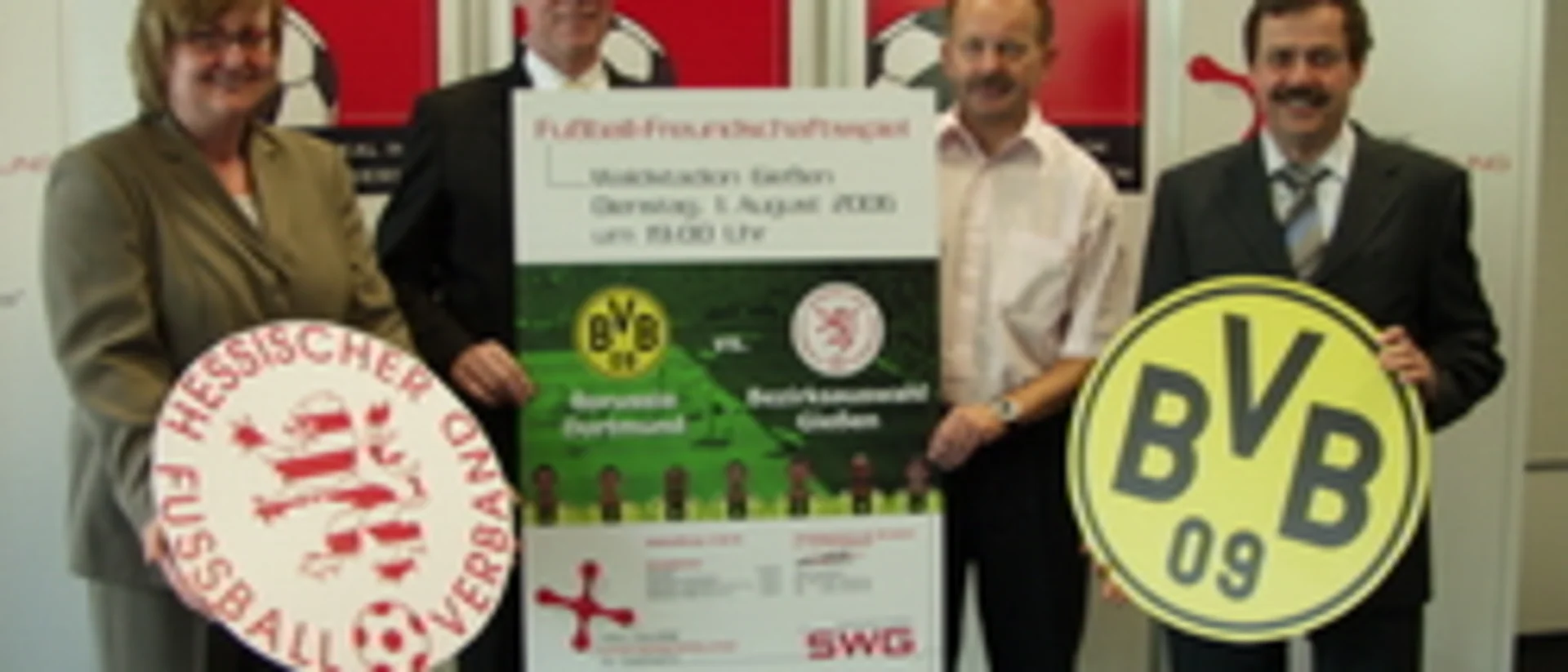Am Dienstag, den 1. August, halten die Stadtwerke Gießen AG (SWG) im Rahmen des Jubiläums der 150-jährigen Gasversorgung einen sportlichen Leckerbissen der Extraklasse für alle Fußballfreunde bereit. Borussia Dortmund spielt im Gießener Waldstadion gegen die SWG-Bezirksauswahl Gießen. Anstoß ist um 19:00 Uhr. Wer keine Chance hatte den Ballzauber von Sebastian Kehl, Christoph Metzelder, David Odonkor und Co. während der Weltmeisterschaft live in einem Stadion zu verfolgen, hat im August in Gießen die Möglichkeit.