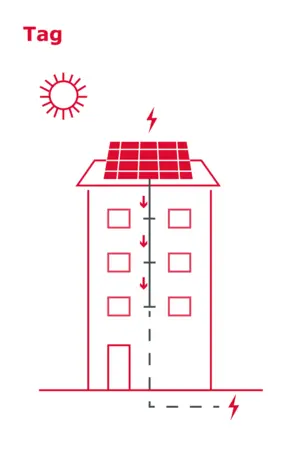 Profitieren Sie als Bewohnerinnen und Bewohner vom erzeugten Strom aus der PV-Anlage auf dem Dach Ihres Wohngebäudes.