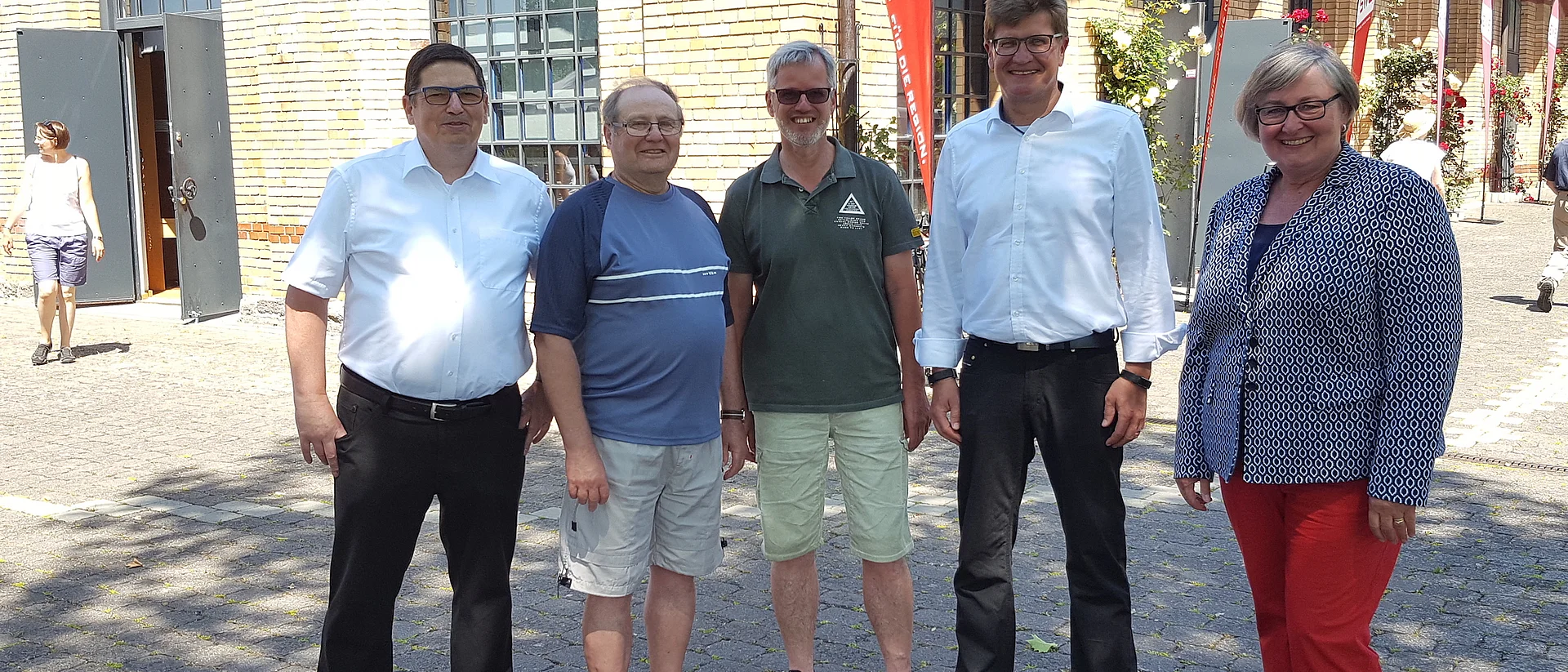 Zentraler Programmpunkt des Tags der offenen Tür waren die Führungen durchs Wasserwerk und den dazugehörigen Brunnengarten. Bevor Peter Keller, Leiter Netze Energie & Wasser bei den SWG die Gäste zu einem Rundgang durch Wasserwerk und Brunnenanlage einlud, erläuterte seine Kollegin Ina Weller, SWG-Unternehmenssprecherin, was die Besucherinnen und Besucher an diesem Tag alles im Wasserwerk erwartete. „Für unsere kleinen Gäste stehen die beliebten Fabius-Ferienspiele auf dem Programm. Das beliebte SWG-Glücksrad steht auch zur Verfügung und für leibliches Wohl ist ebenfalls gesorgt.“ Keller übernahm es dann, die Gäste mit profundem Fachwissen zum Thema Wasser zu unterhalten. „Das für die späte Gründerzeit typische und inzwischen von Grund auf sanierte Klinkergebäude ist nicht nur schön anzusehen; es genügt auch heute noch allen Anforderungen“. Und er lieferte die Begründung gleich mit: „Wir halten die Technik im Inneren des Wasserwerkes immer auf aktuellem Stand und legen insbesondere bei der Trinkwassergewinnung sehr, sehr großen Wert auf Qualität.“