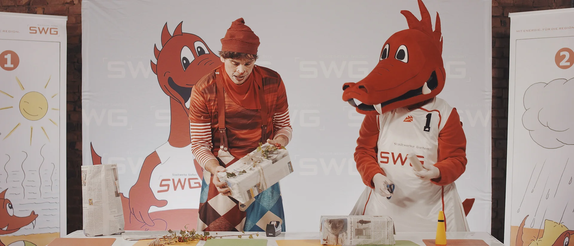 Just in time for the festive season, Fabius, the mascot of Stadtwerke Giessen, and clown Ichmael show how children can pack a parcel using recycled materials. In a new video of the discovery tour with Fabius.