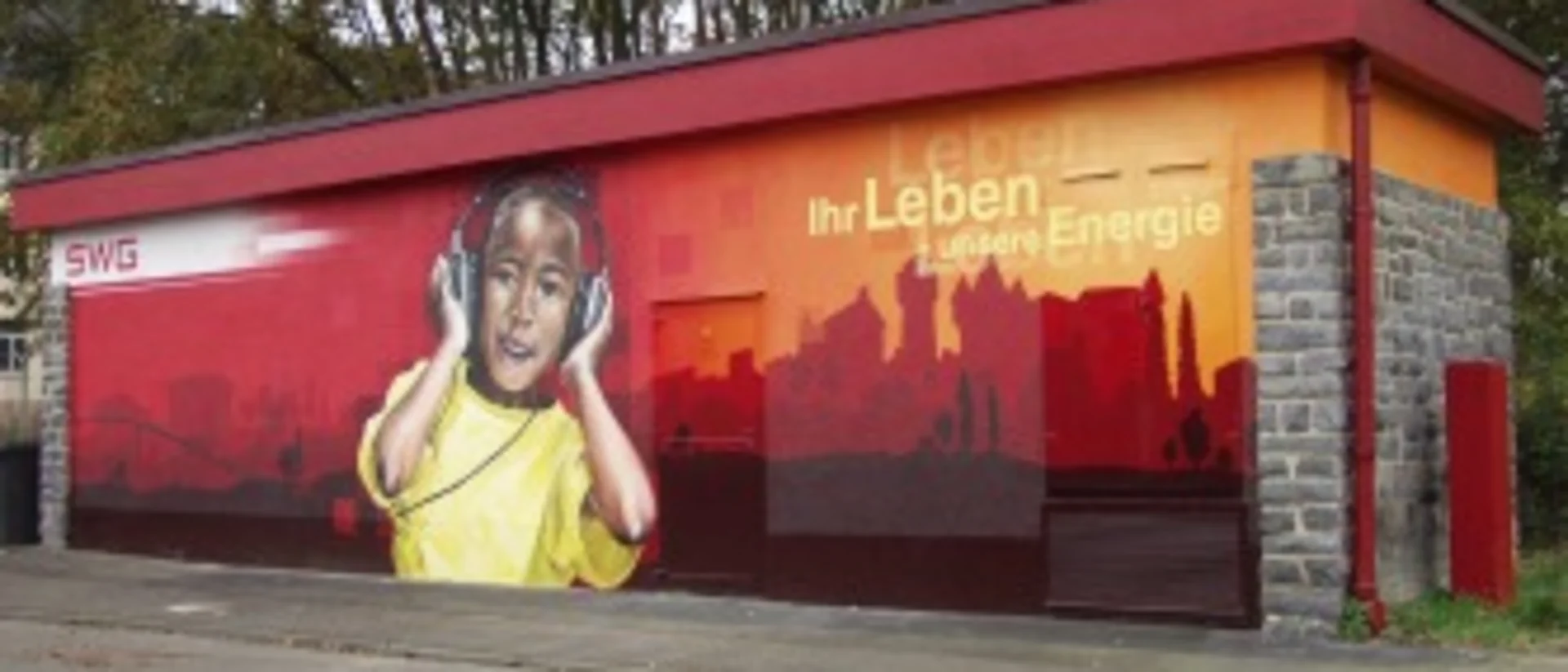 Young and committed artists, lots of colour in spray cans and creativity - and a bland switching station becomes a real eye-catcher. Marcus Dörr, creative director of the artmos4 agency from Offenbach, and his team have given the Stadtwerke Gießen AG (SWG) substation a new coat of paint. The finished work of art can be admired at the end of the town at the motorway exit in Licher Straße. Yesterday, the graffiti artists proudly presented the masterpiece to Frank Rompf, head of SWG's power supply facilities. The result: in the foreground, a likeable advertising medium conveys the positivity of the energy supply. The silhouette of Giessen serves as the background. The artwork once again symbolises the motto of Stadtwerke Gießen: Your life - our energy.