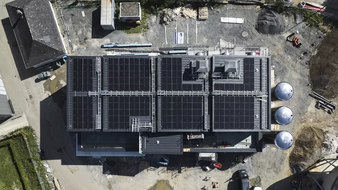 The PV system with a size of approx. 52 kWp (kilowatt peak) will be installed on the roof of the energy centre and will cover part of the total electricity requirement.
