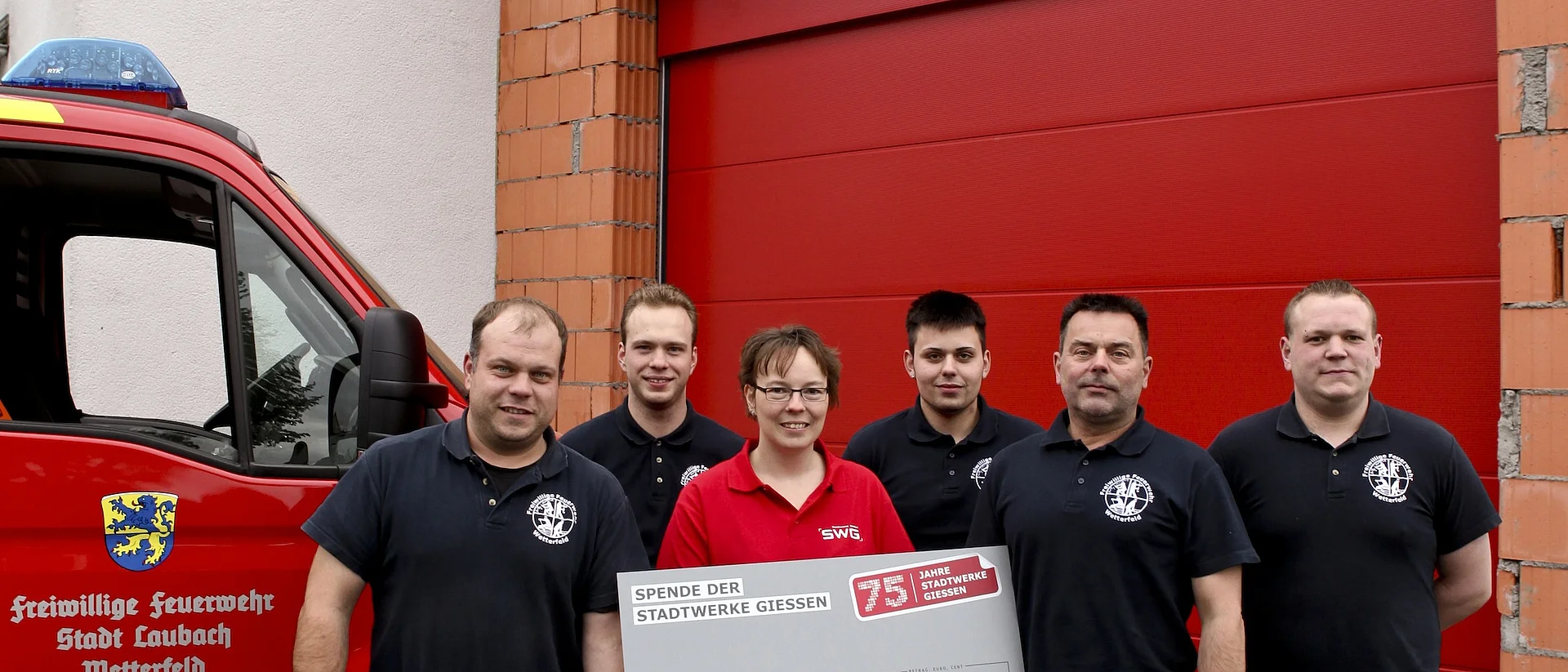 Although the town of Laubach covered the purchase costs, the volunteer fire brigade had to build a new hall to house the vehicle. The active members took on the shell construction themselves, minor work is still outstanding and until a few days ago the hall door was also missing. Due to the comparatively tight budget, the fire brigade association was unable to finance it entirely from its own funds. Donations were necessary, as Katrin Happel from the Customer Services department at Stadtwerke Gießen (SWG) was aware. She herself has been actively involved in the volunteer fire brigade since her youth and suggested helping the emergency services from Wetterfeld with one of the 75 good deeds. "The work of the volunteer rescuers is very valuable and anything but self-evident. After all, they sacrifice countless hours of their free time. A service for the people in the communities that Stadtwerke supports," explains the SWG employee.