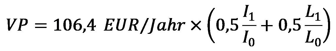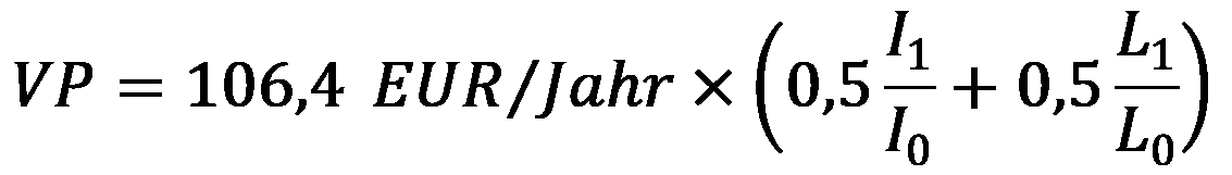 L0 = базовая месячная заработная плата работника 7-й группы оплаты труда 5-го уровня коллективного договора для коммунальных предприятий (TV-V) от 5 октября 2000 года в редакции 13-й поправки к коллективному договору от 18 апреля 2018 года = 3 727,25 евро (заработная плата брутто на 01.07.2019).