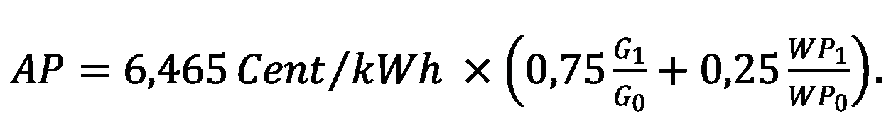 WP1 = Среднее арифметическое значение индексов цен на тепло за последние 6 месяцев с временным лагом в 2 месяца. Федеральное статистическое управление, база данных Genesis, индекс потребительских цен для Германии, специальные статьи, код CC13-77 (индекс цен на тепло (централизованное отопление, включая эксплуатационные расходы)).