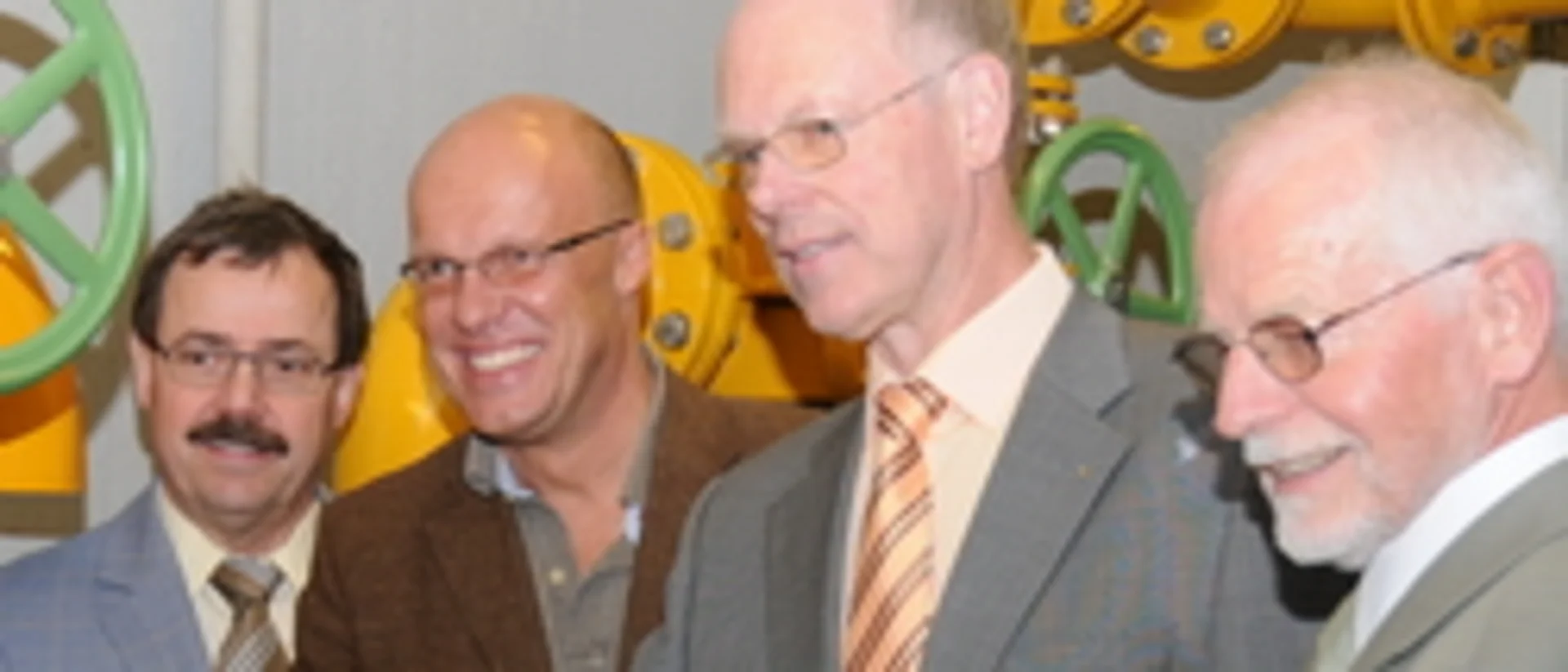 Мэр Матиас Клозе, Карл-Рудольф Шён (первый олдермен), Манфред Зикманн (председатель правления SWG), его коллега по правлению Райнхард Пауль, Харальд Шотт (отдел продаж дистрибьюторам и муниципалитетам), Петер Келлер (руководитель отдела проектирования систем газо- и водоснабжения) и Норберт Пауснер (заместитель руководителя отдела проектирования систем газо- и водоснабжения) встретились, чтобы символически нажать на рычаг для подачи воды.