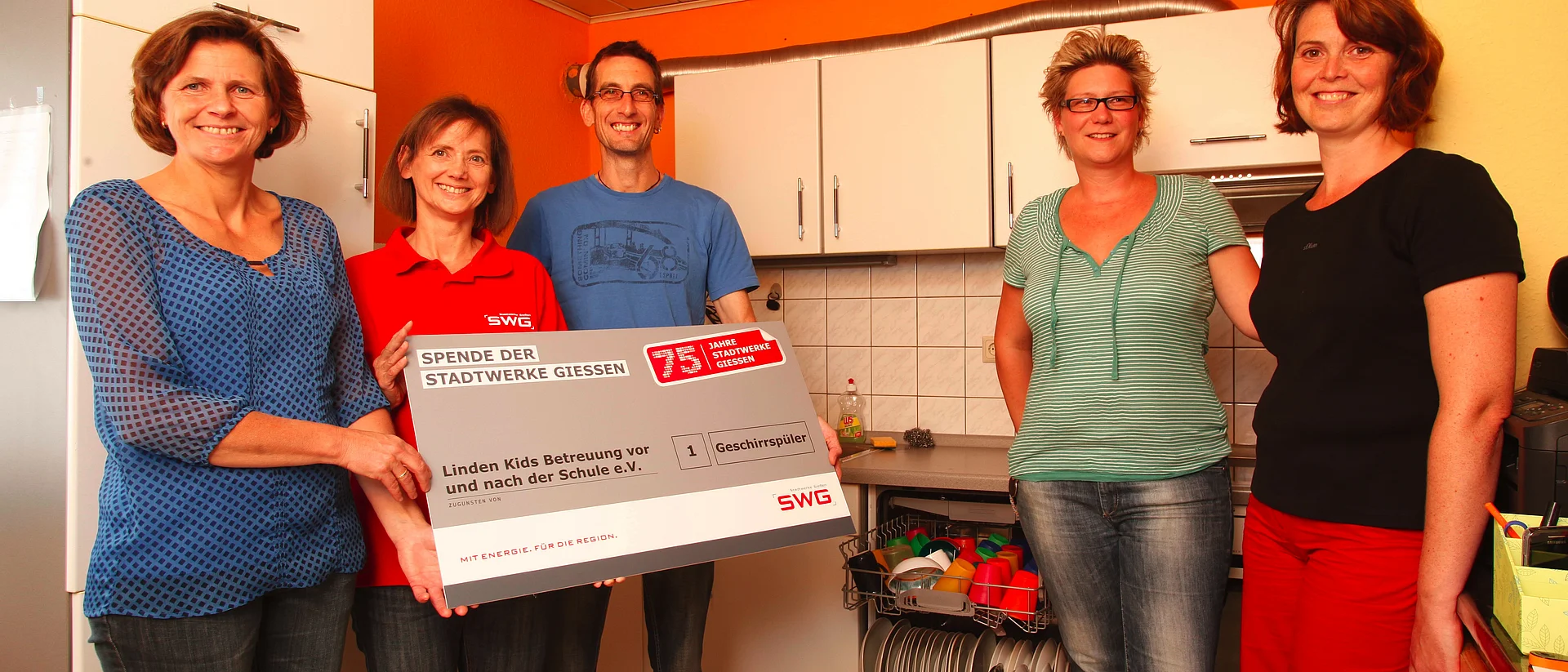 Для багатьох мам і тат поєднання роботи та догляду за дітьми є одним з найбільших викликів у повсякденному житті. Тому 21 рік тому з ініціативи батьків було засновано "Linden Kids - Betreuung vor und nach der Schule e.V.". За цей час асоціація перетворилася на постійну установу на сусідній території міської школи в Ліндені. Двоє штатних вихователів і четверо позаштатних доглядають з понеділка по п'ятницю близько 25 дівчаток і хлопчиків молодшого шкільного віку. Учні разом обідають, виконують домашні завдання та граються в приміщенні або на свіжому повітрі. "У нашому центрі ми надаємо великого значення згуртованості, - запевняє Ральф Гокель, перший голова асоціації Linden Kids. Наприклад, вихователі регулярно залучають дітей до складання меню. Хлопчики та дівчатка також допомагають накривати на стіл і ставити посуд в посудомийну машину після їжі - донедавна в старий прилад, який вже протікав. "Посудомийною машиною ми користуємося щодня, і нам терміново потрібна була нова, поки стара не вийшла з ладу остаточно", - пояснює Ральф Гокель. Хайке Ріхардт, яка працює у відділі обслуговування клієнтів у Stadtwerke Gießen (SWG), дізналася про цю надзвичайну ситуацію. Її десятирічна донька відвідує початкову школу "Лінден" і розташований поруч дитячий садок. "Персонал Linden Kids - величезне полегшення для нас, працюючих батьків. Ми можемо покладатися на те, що наші діти в надійних руках до і після школи. Такі умови та відданість вихователів заслуговують на підтримку", - підкреслює Хайке Ріхардт. Шукаючи 75 добрих справ у ювілейний рік, співробітниця SWG запропонувала допомогти асоціації фінансово із запланованою покупкою. У середу, 28 серпня, вона вручила символічний чек на придбання нової посудомийної машини Ральфу Гоккелю та Сандрі Вайсерт, другій голові асоціації, скарбнику Мануелі Цьорб та Мартіні Брьошер, завідувачці закладу. "Велика подяка Stadtwerke Gießen за фінансову допомогу у придбанні посудомийної машини", - сказала Мануела Цьорб.