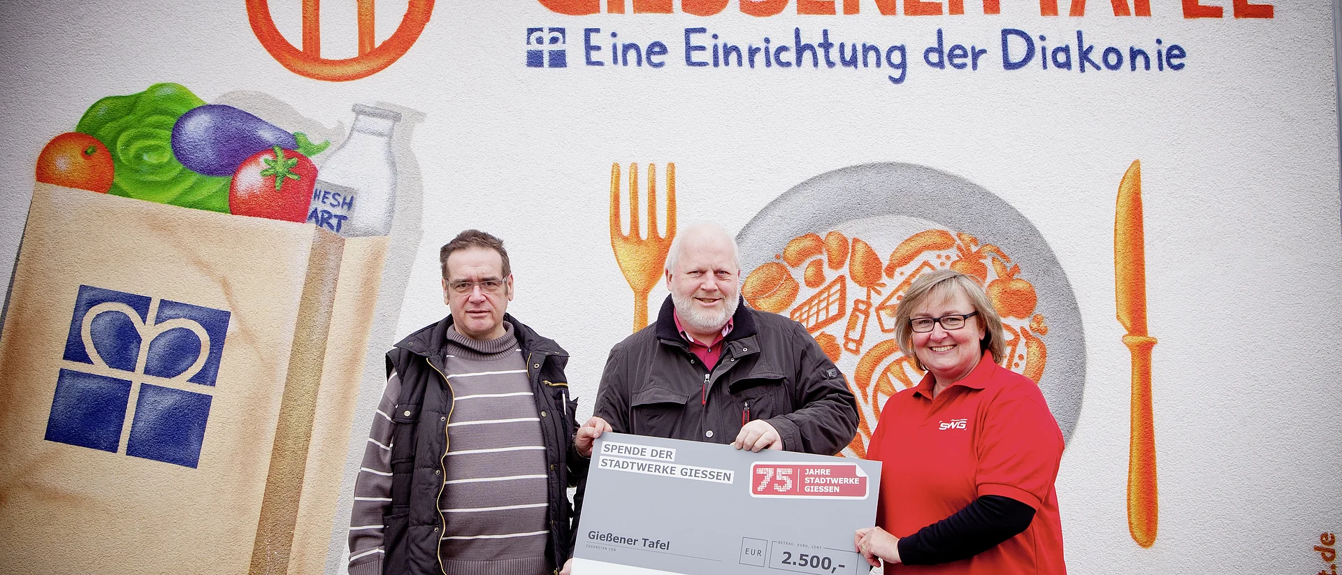 Гіссенська їдальня в даний час роздає їжу більш ніж 1600 нужденним людям. Це завдання, в якому Stadtwerke Gießen (SWG) підтримує організацію Diakonisches Werk пожертвою в розмірі 2 500 євро. Минулого понеділка SWG також надала їжу для продовольчого банку.